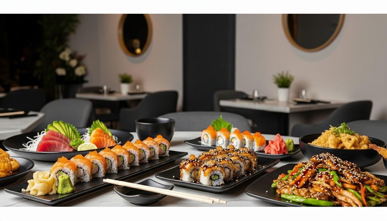 The menu features a wide variety of sushi, sashimi, and specialty rolls, alongside classic Asian dishes such as teriyaki, tempura, and stir-fry. Every dish is made with fresh ingredients and bold flavors, providing a combination of traditional taste and modern presentation.